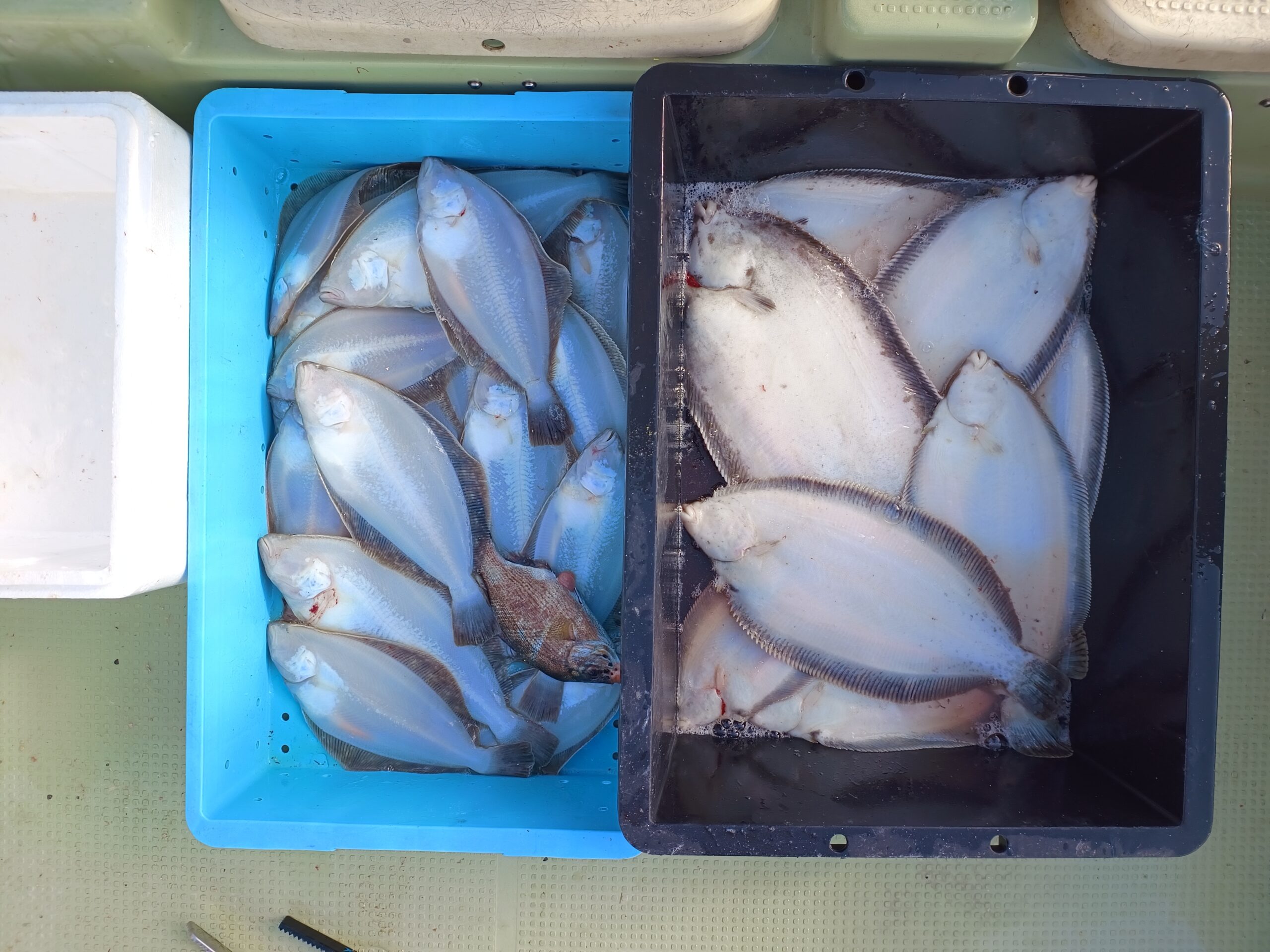 今日はあまり風は吹かない予想なので魚の活性が良い事を願って出漁。 最初の場所でナメタガレイ、ヒガレイ、アブラメと調子の良い出だしになりました。 次の場所ではなかなか良いアタリが少なく釣れる場所を求めて何か所も移動しましたが少し良いようでも長く続きません。それでも今日はアブラメが13と結構な数あがりました(放流が4尾)他にマコガレイも3~4枚、ヒガレイが全部で45枚ほど、メインのナメタガレイが10枚、マダラが2本と人によって使っている仕掛けの違いがあるのでしょうが今日ほど釣れる魚の違いが極端に違ったのは初めてでした。今日は気温は-5度くらいと寒いのですが風はあまり強くないのに助けられました。それでもいろいろな魚が釣れてくれて喜んでいただけて良かったです。ありがとうございました。 ...