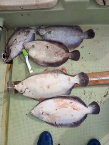 最後のナメタはアワビ口開けの際に突いた獲物で今乗っ込みの真っ最中みたいです。アワビ口開けでご迷惑おかけしましたのでお客さんに1枚ずつ進呈(^_^)
